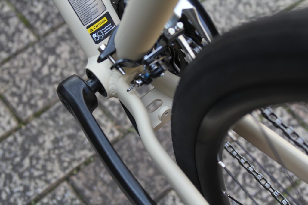 もちろん、サイドスタンドも取り付け可能。いずれにしても(チェーンステーとシートステーに固定して取り付けるスタンドよりも)スッキリとした見た目でスタンドが取付できます。