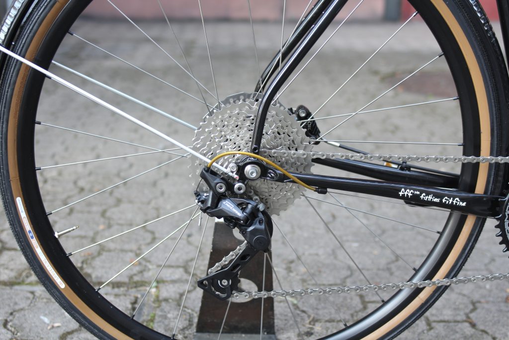 ギアはフロントシングル(40T)、リア(11-42T)10速の組み合わせで、ブレーキは機械式ディスクです。