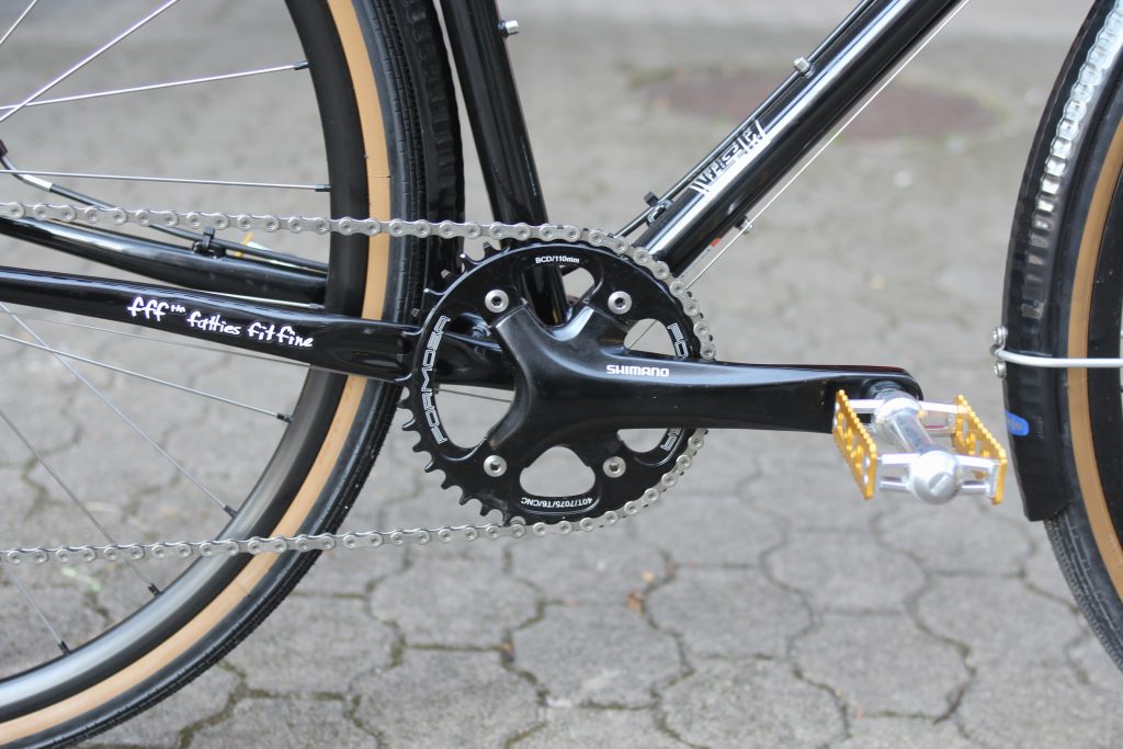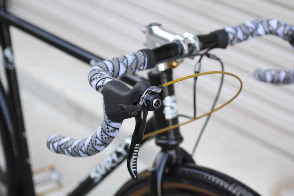 ギブネールというブランドの珍しいレバーを使いギア周りはMTB1x10速仕様。HONJOのフェンダーを取付てネオクラシック(?)な感じで組んでみました。