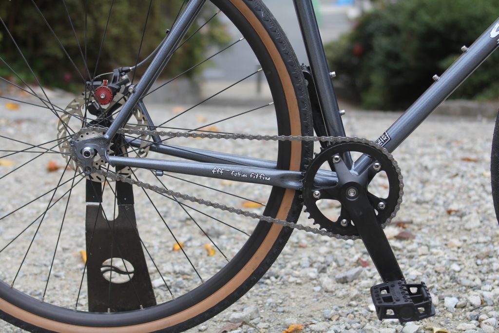 スラインドエンドの特性を活かしシングルスピードで組みました。もちろん後々ギアの取付も可能です。