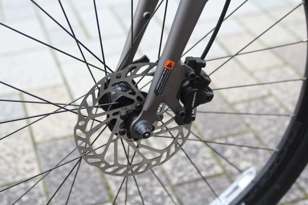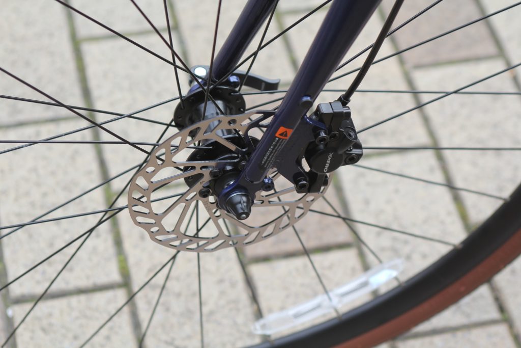 ディスクブレーキの特徴はなんといっても高い制動力!雨の日でも効きやすく、個人的には雨の日でも通勤や通学で使う方やアップダウンが多くありブレーキを多用する方にオススメしています。
